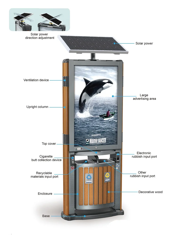 | اسم المنتج | إعلانات الطاقة الشمسية LED صندوق إضاءة مزدوج الجوانب مقاوم للماء في الهواء الطلق مع سلة المهملات | تخصيص | حسب الطلب |