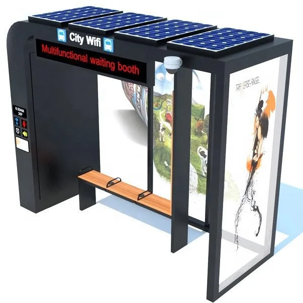 بيت » منتجات » الأثاث في الهواء الطلق » مأوى حافلة » نظام النقل العام الذكي مأوى للحافلات الشمسية وتصميم محطة الحافلات الذكية المصنوعة من الفولاذ المقاوم للصدأ