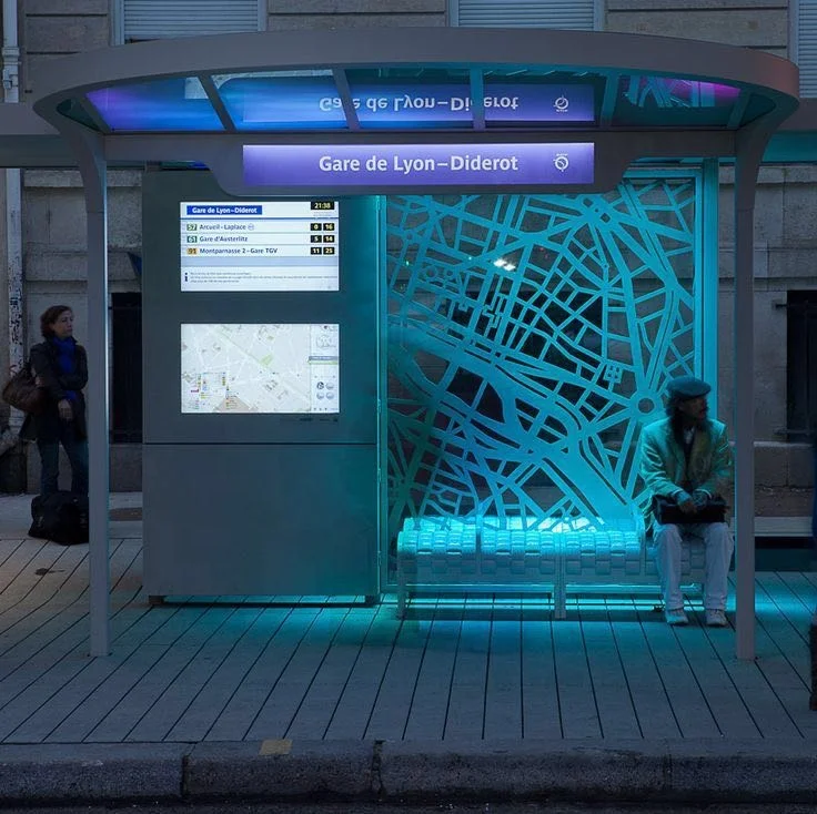 نظام النقل العام الذكي مأوى للحافلات الشمسية وتصميم محطة الحافلات الذكية المصنوعة من الفولاذ المقاوم للصدأ